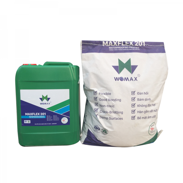 MaxFlex 201 là màng chống thấm 2 thành phần không mối nối, quét lỏng được chế tạo dựa trên cơ sở các polyme chất lượng cao, xi măng và các loại phụ gia đặc biệt khác. Đặc tính tự bảo dưỡng nhờ hơi ẩm giúp cho MaxFlex 201 được sử dụng lý tưởng cho các khu vực ẩm ướt, các loại mái, bao lơn, sàn lộ thiên, tường chắn đất và tầng hầm.