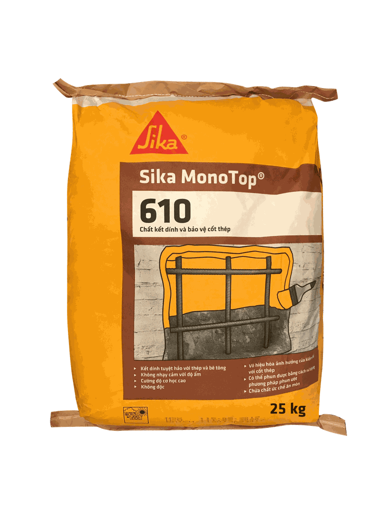 Sika Monotop 610 là một loại vữa gốc xi măng, polyme cải tiến, một thành phần. Đây là biện pháp xử lý tránh tiếp tục ăn mòn cốt thép trong bê tông và là lớp kết nối với bê tông sửa chữa khi sử dụng hệ thống sửa chữa bê tông SIKA Monotop, hệ thống này bao gồm :