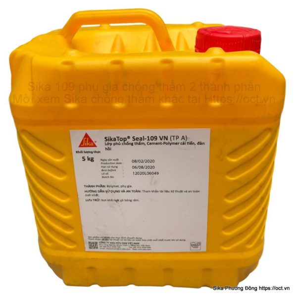 SikaTop Seal 109 Việt Nam gốc xi măng, 2 thành phần nước và bột, có tính đàn hồi, lớp phủ chống thấm che phủ lên bề mặt bê tông hay vữa xi măng để ngăn nước. Để chống thấm là chính ngoài ra sử dụng trám che lấp vết nứt nhỏ chân chim, bảo vệ chống lại sự thâm nhập của khí các -bo- níc, chống lại quá trinh hình thành điểm sương, băng tuyết trên bề mặt.